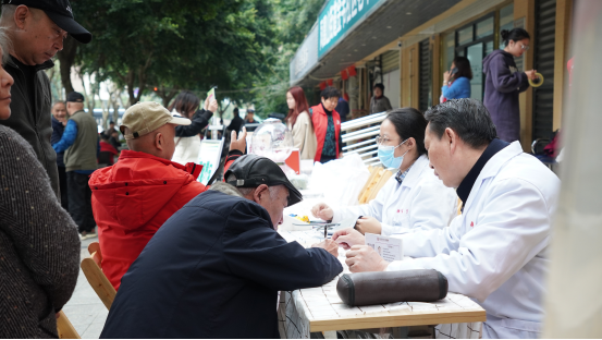 活动一开始,李主任的义诊位前就迎来了许多居民。大家有序排队,就自己关心的健康问题向专家请教。李主任始终耐心倾听,细致地为每一位居民分析情况。